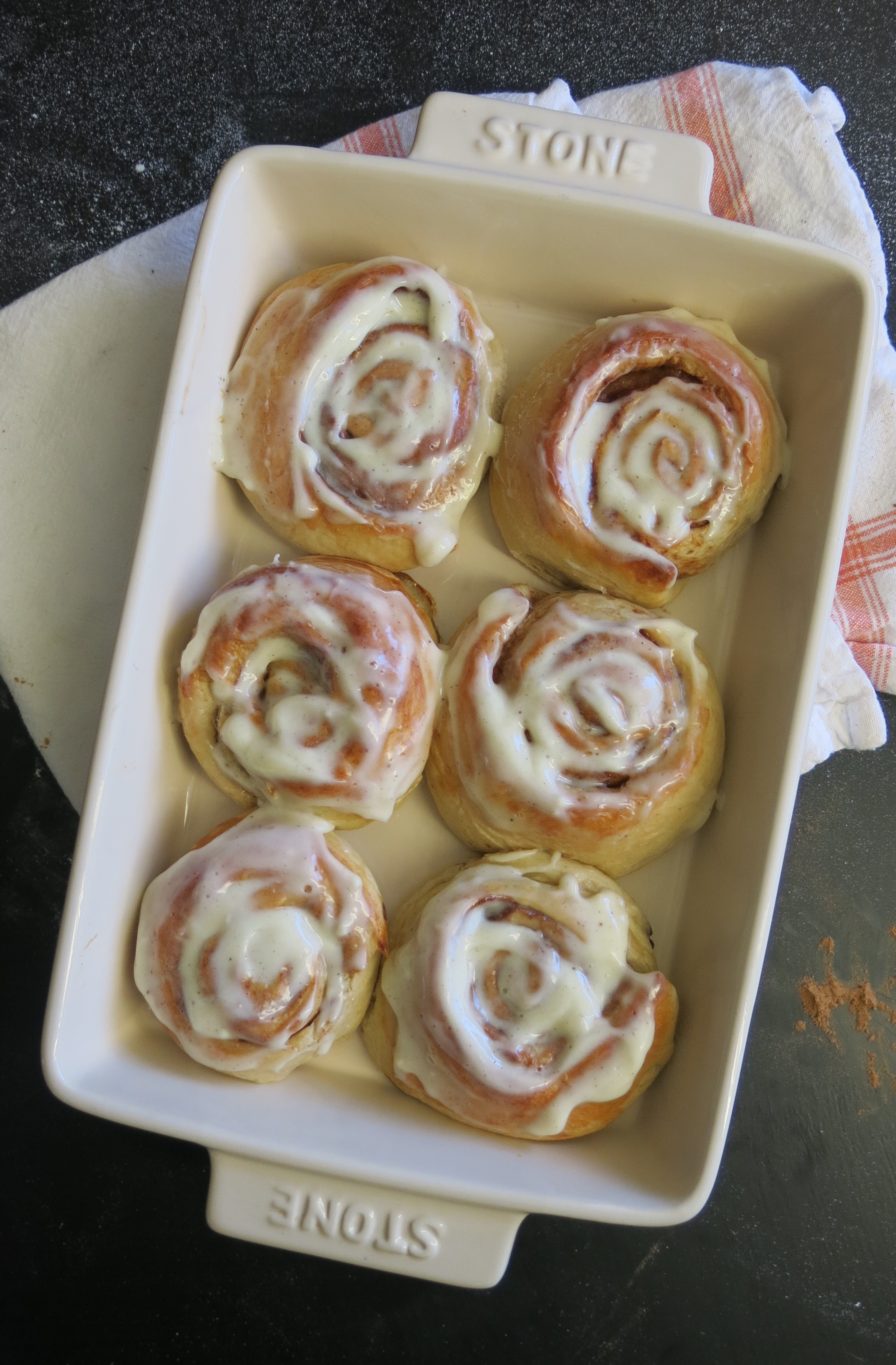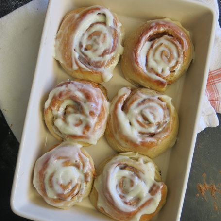 Mens bollene steker, lager du glasuren. Pensle på denne mens bollene fortsatt er lune. Serveres umiddelbart.
