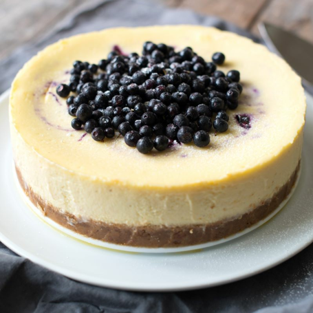 La kaka stå 4 t, eller over natta, i kjøleskap før servering. Pynt med blåbær og sikt over melis før servering.