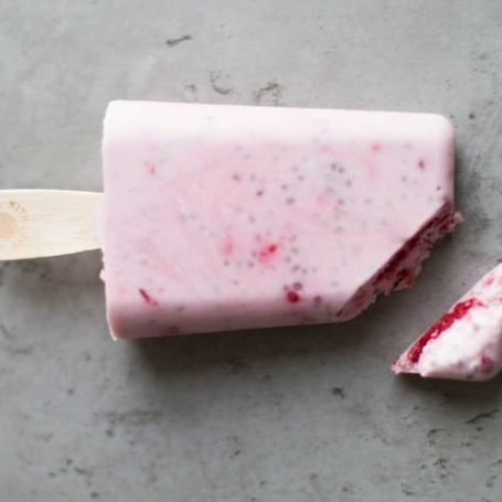 Del bringebærene i to og ha i blandingen. Hell i ispinne-former.