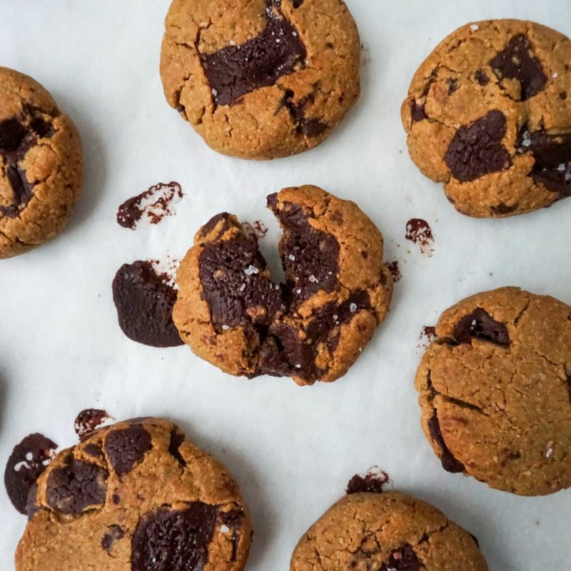 Vend inn vanilje, bakepulver, salt og havregrynmelet inn i cashewsmørblandingen og bland det godt sammen. Det letteste er å bruke hendene!