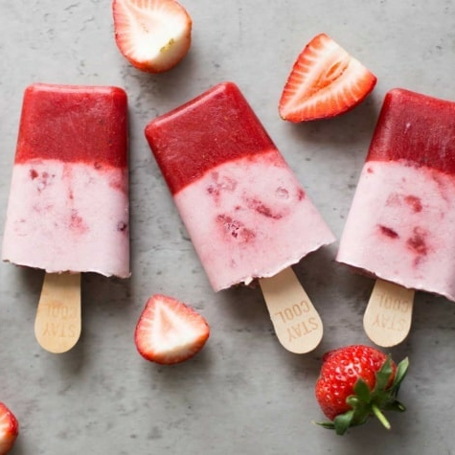 Forfriskende hjemmelagde ispinner med sommerlig smak av jordbær og kokos!