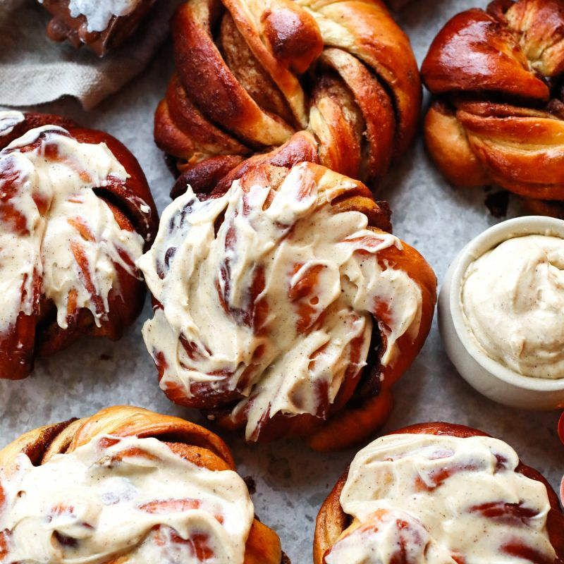 Pepperkakeknuter med nøttebrun kremostglasur. Klassiske «kanelknuter», men med en julevri.