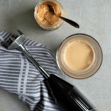 Kjør sammen kaffe og cashewsmør i en blender eller med en stavmikser til det er kremet og helt blandet.
