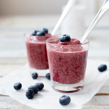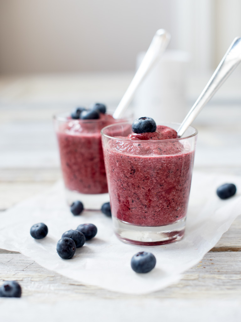 Fyll opp i to glass og server med friske blåbær på toppen.
