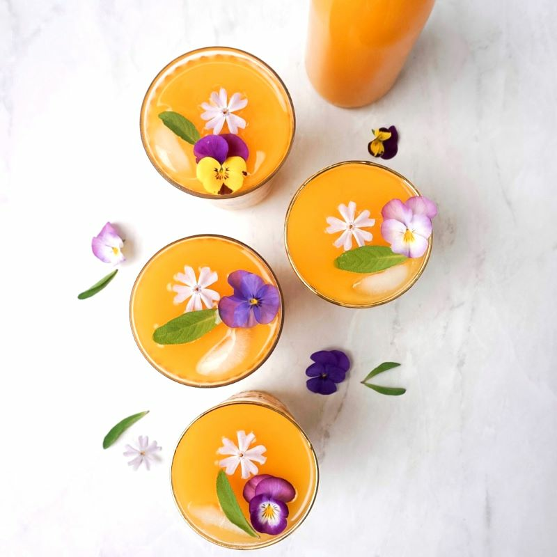 Hell over i favorittglassene dine og pynt med spiselige blomster.