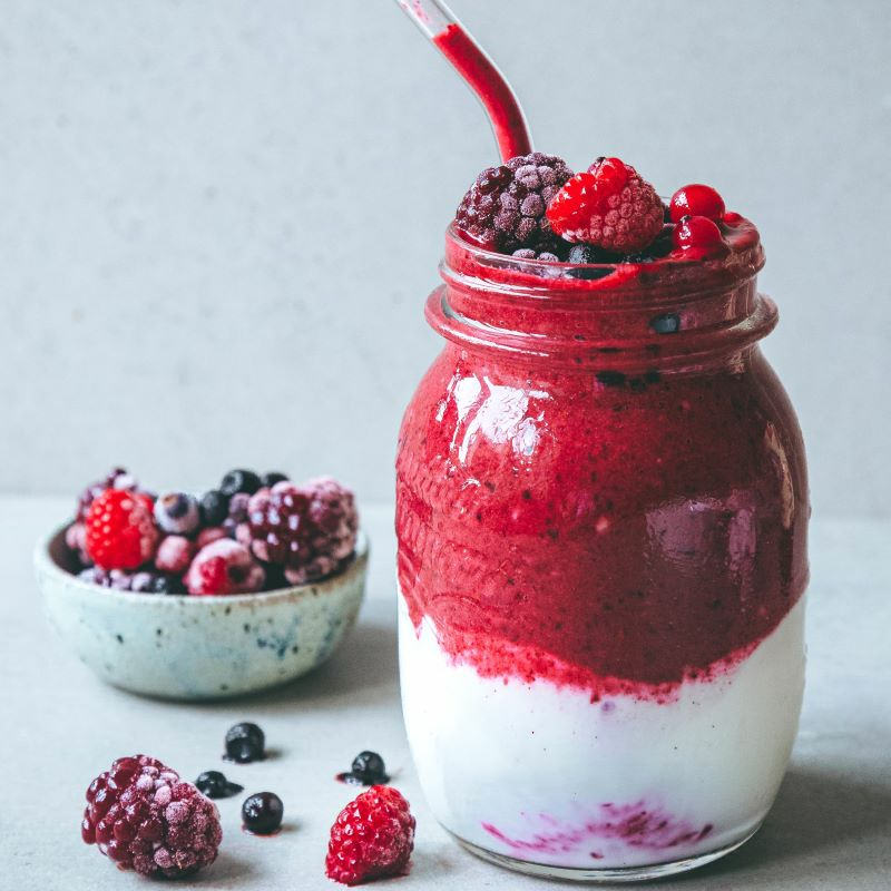 Lag en fargerik smoothie med druejuice! Druejuice inneholder masse antioksidanter, og med ingefær og havregryn blir dette en skikkelig god start på dagen.
