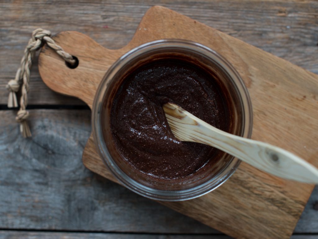 Ha nøttene over i ei matmølle eller en kraftig blender og kjør til du har skinnende glatt hasselnøttsmør.