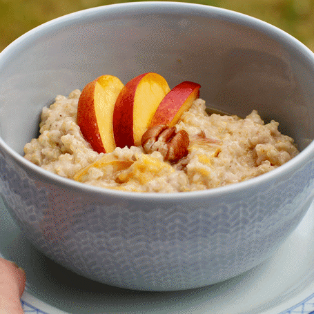 Server grøten med friske nektariner og litt mer lønnesirup.