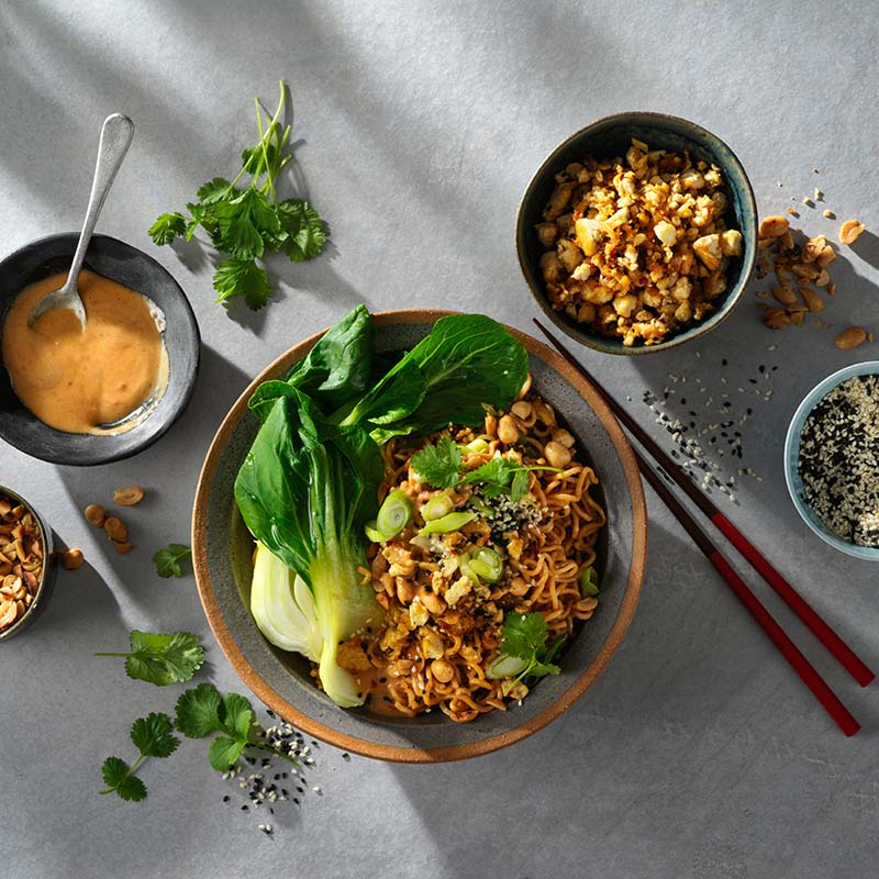 Smuldret og sprø chilitofu og kremete nudler møtes i vår variant av Sichuan-retten Dan Dan Noodles.