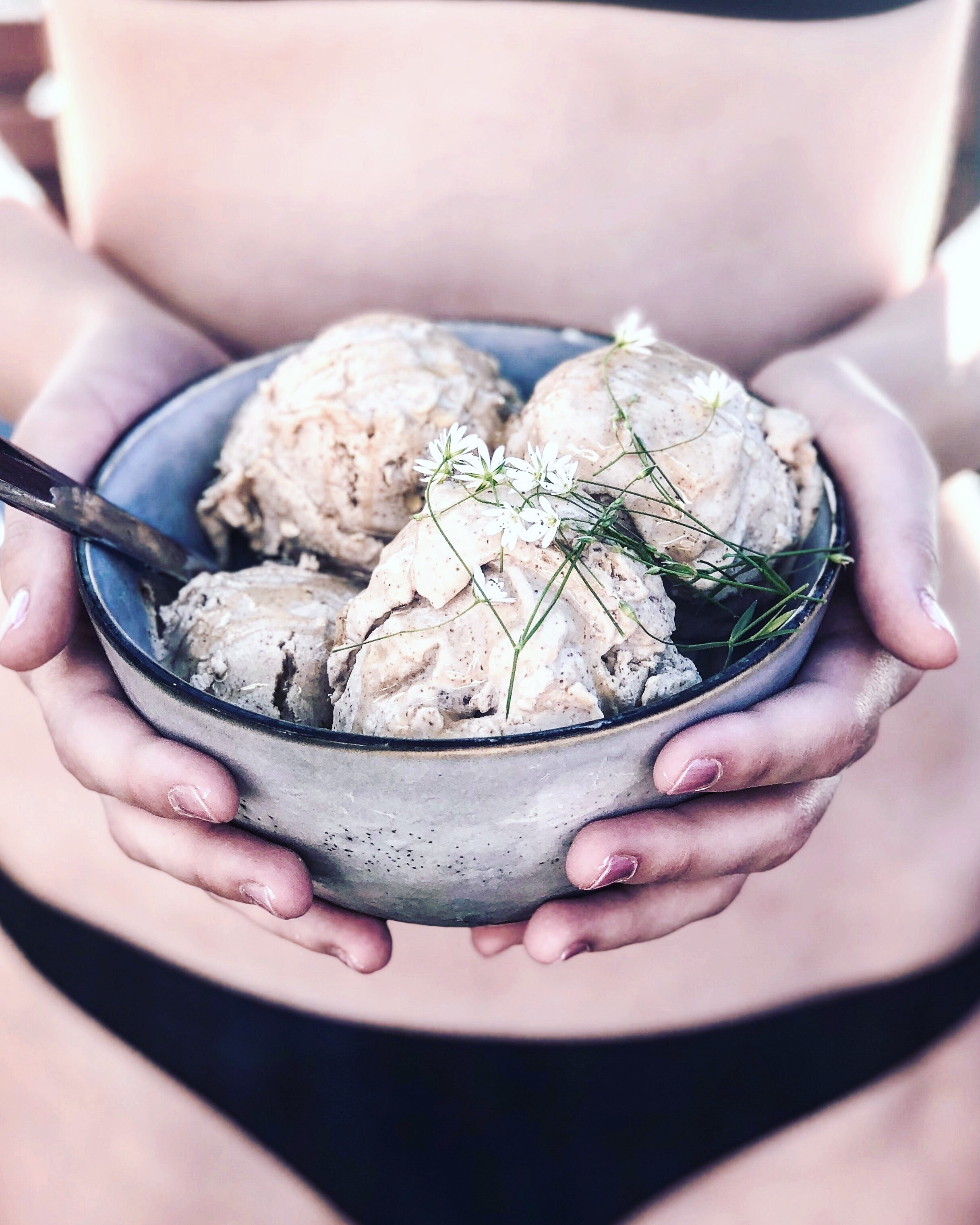 Hjemmelaget iskrem med smak av mandler og salt karamell