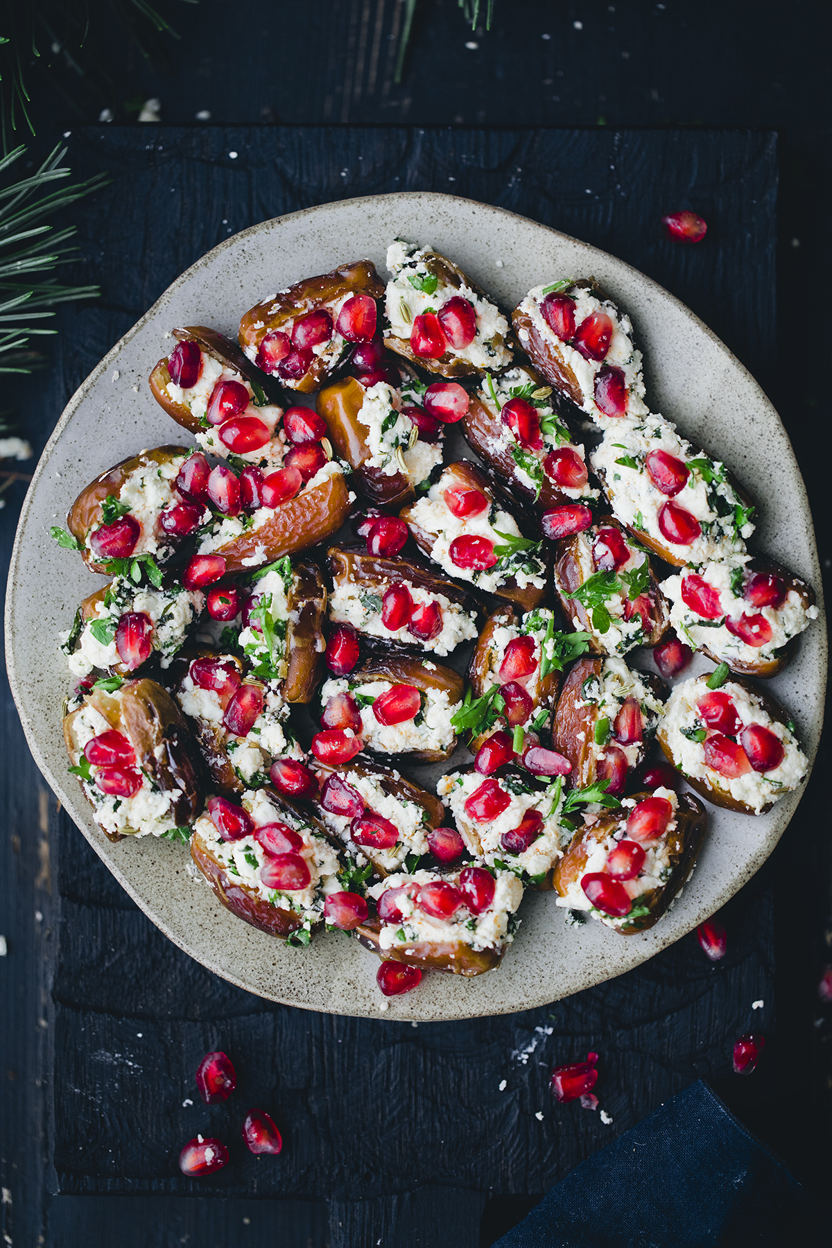 Søte dadler møter salt fetaost, frisk mynte og syrlige granateplekjerner i denne enkle retten som passer til alle vinterens fester.