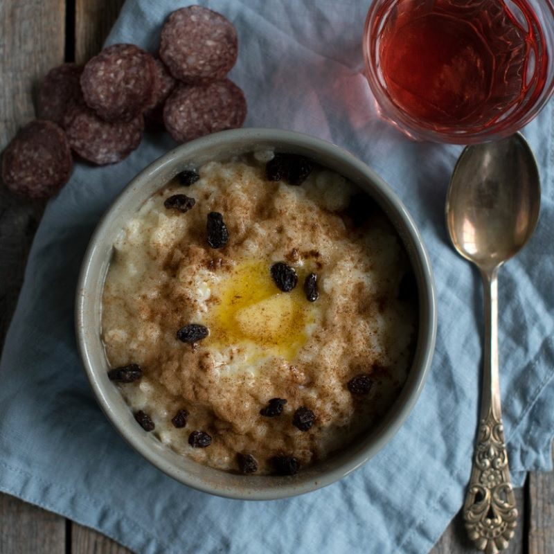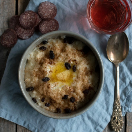 Servér grøten med det samme med sukker, kanel og smørøye.