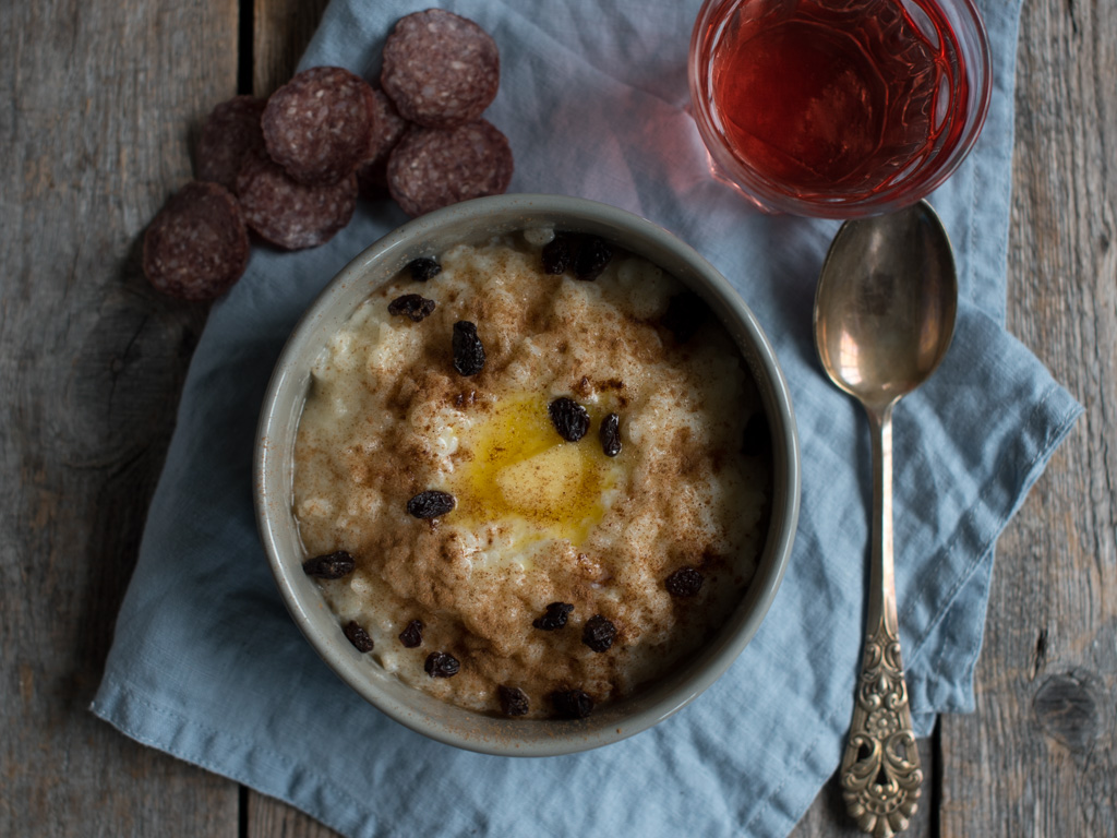 Servér grøten med det samme med sukker, kanel og smørøye.