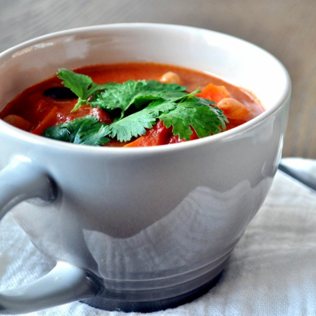 Ha tomater og kokosmelk over grønnsakene i gryta, kok opp og tilsett saft fra lime, soyasaus, bønner, linser og kikerter.