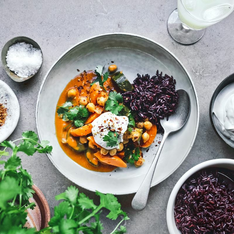 En rik kokosmelkgryte er obligatorisk på høsten. Den her er både rask og enkel å lage, kan varieres på mange måter og er perfekt dersom man har litt grønnsaksrester liggende i kjøleskapet som man gjerne skulle ha blitt kvitt.