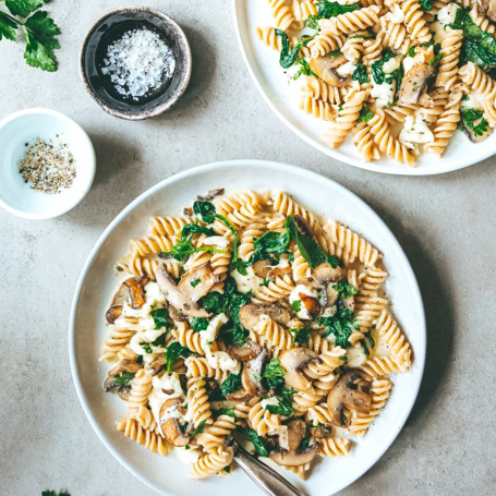 Kremet pasta med mozzarella, spinat og sopp blir aldri feil. Denne er enkel, rask og superdigg!