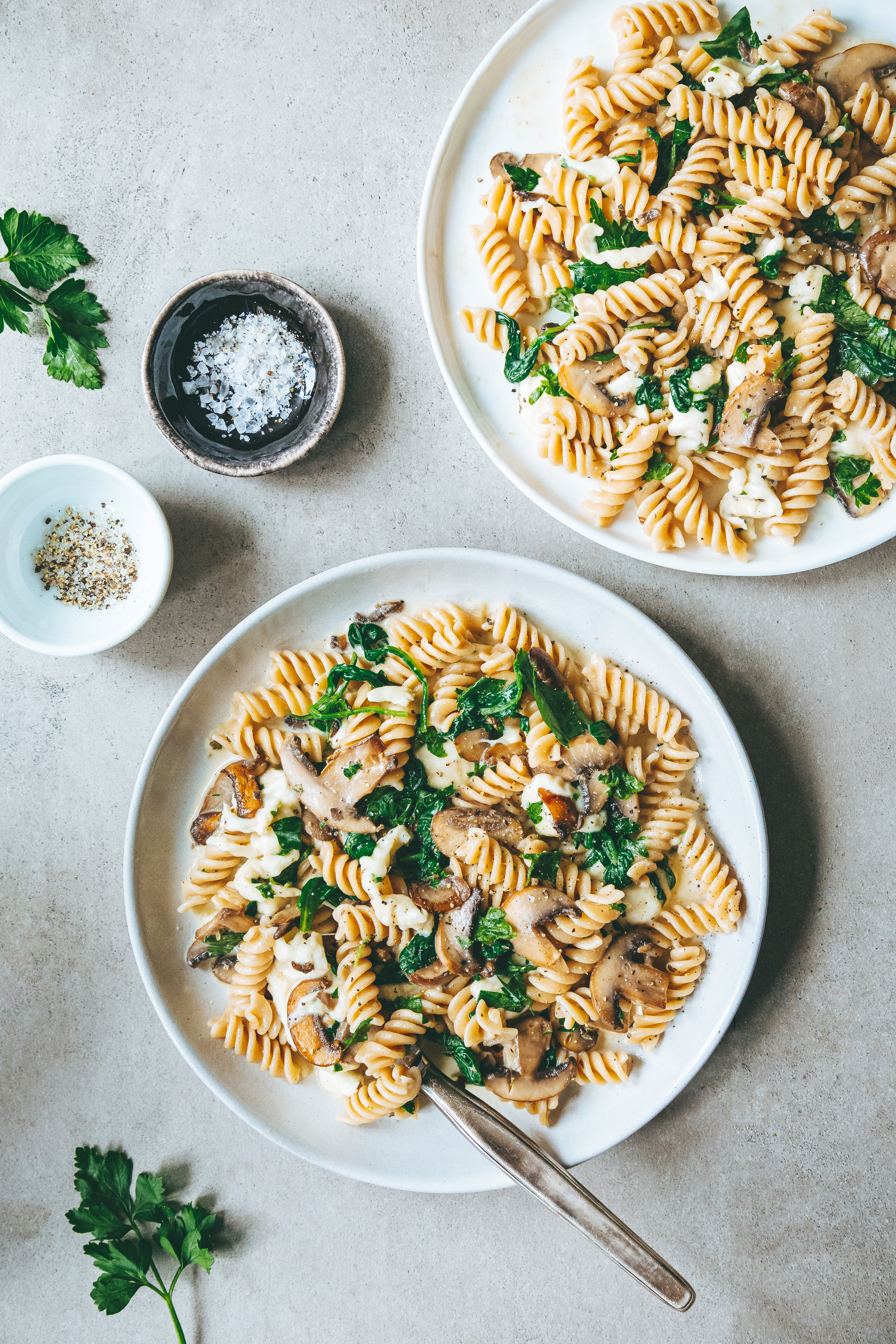 Kremet pasta med mozzarella, spinat og sopp blir aldri feil. Denne er enkel, rask og superdigg!