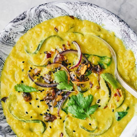 Krydret linsesuppe er en klassisk vinterrett som er enkel og rask å lage, og smaker alltid like godt. Trikset for å få en skikkelig god linsesuppe er å hakke opp et par aprikoser for en myk sødme og toppe den med rødløk, aprikoser og hvitløk som sprøstekes i krydder og kokosolje.