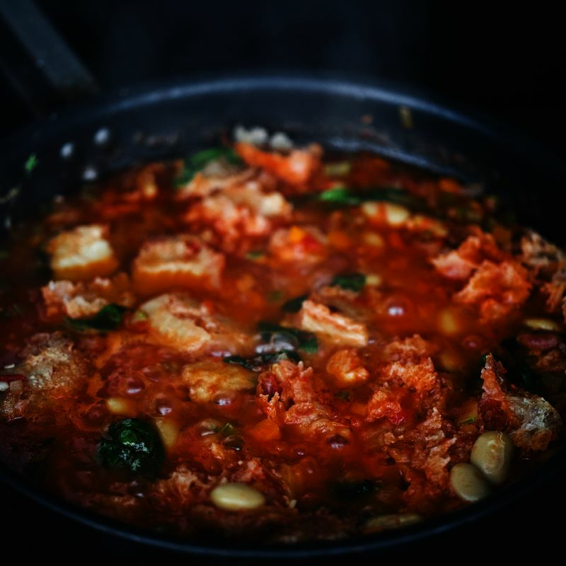 Ribollita er en toskansk suppe med store hvite bønner. En skikkelig kosemat som er perfekt å lage når du har grønnsakstilker igjen i kjøleskapet. Ha i det du har hjemme og topp med hakkede tomater, bønner og buljong. Avslutt med å bruke gårsdagens brød ved siden av eller oppi retten.