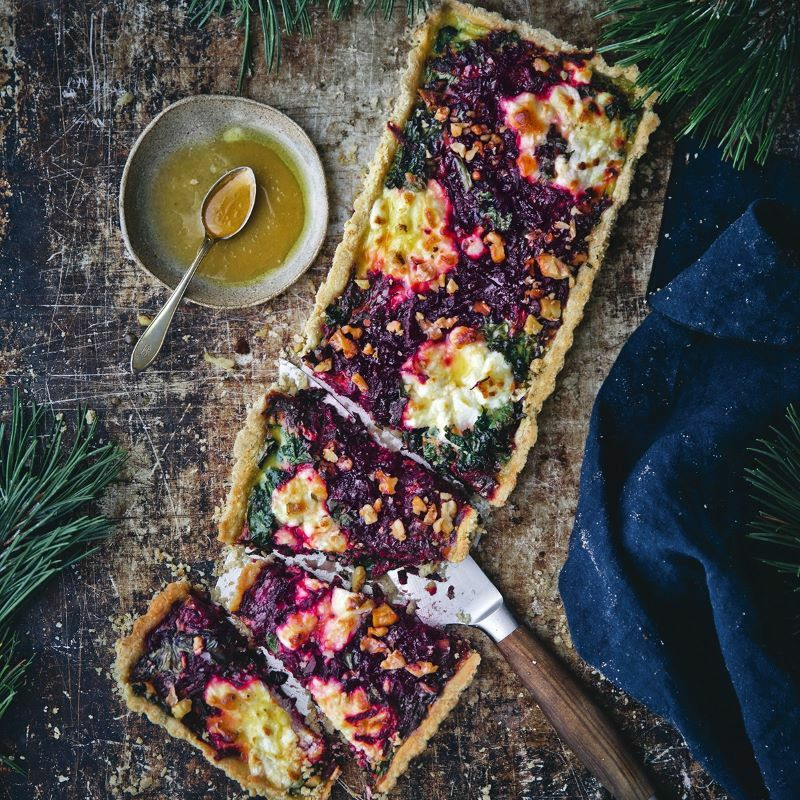 En fantastisk glutenfri festpai med sødme fra rødbeter og honning og deilig knas fra valnøtter. Passer til alle anledninger.