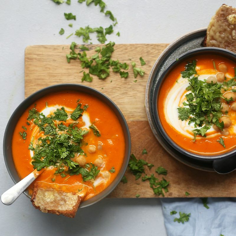 Kjør suppen til ønsket konsistens i en kjøkkenmaskin eller stavmikser.