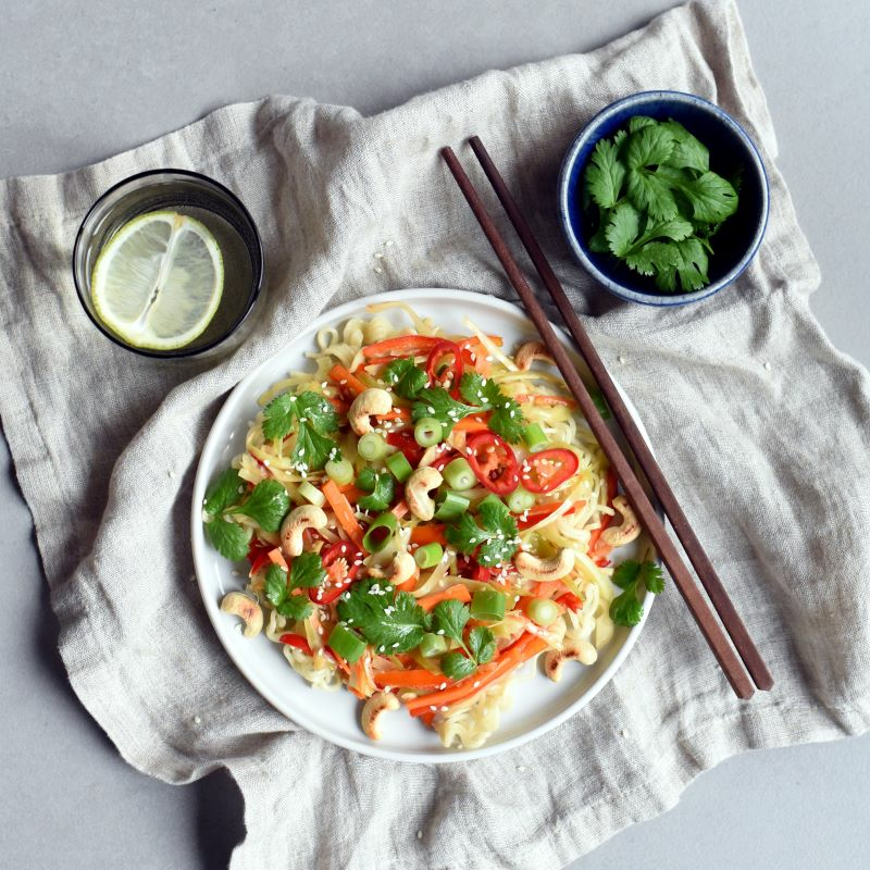 Asiatisk nudelsalat går raskt å lage, men den blir ekstra deilig om den får ligge og godgjøre seg en stund i marinaden før den serveres.