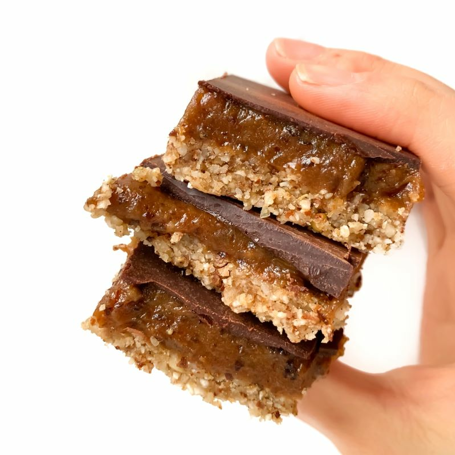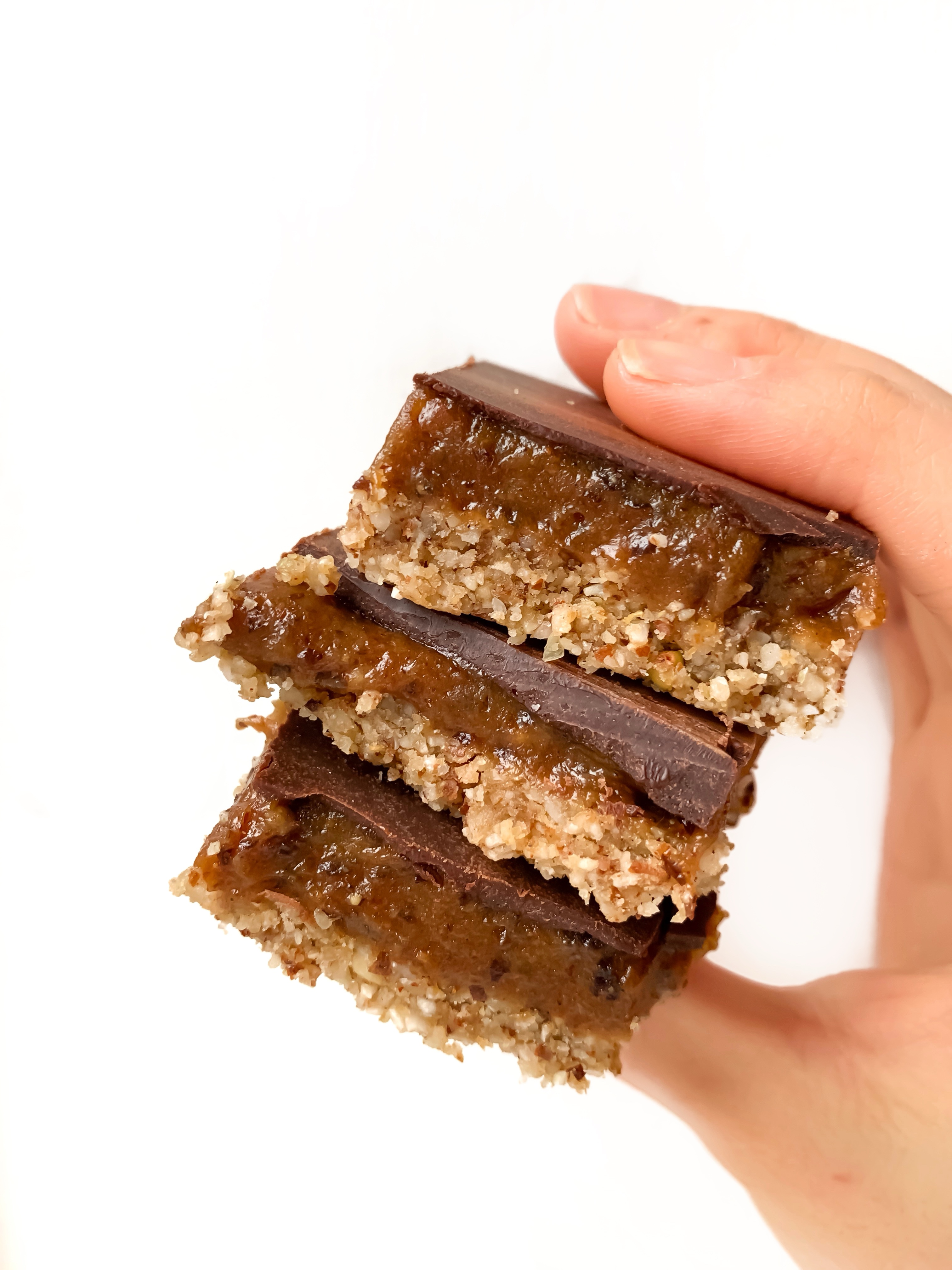 Miks sammen mandler og kokosmasse i en blender til det blir i mindre biter og blander seg sammen.