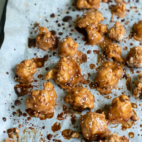 Pensle blomkålbukettene med glasering og stek i 5-7 minutter til.