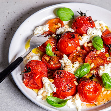 Bak i ca. 20 minutter, til tomatene har blitt myke og skinnet har begynt å sprekke.