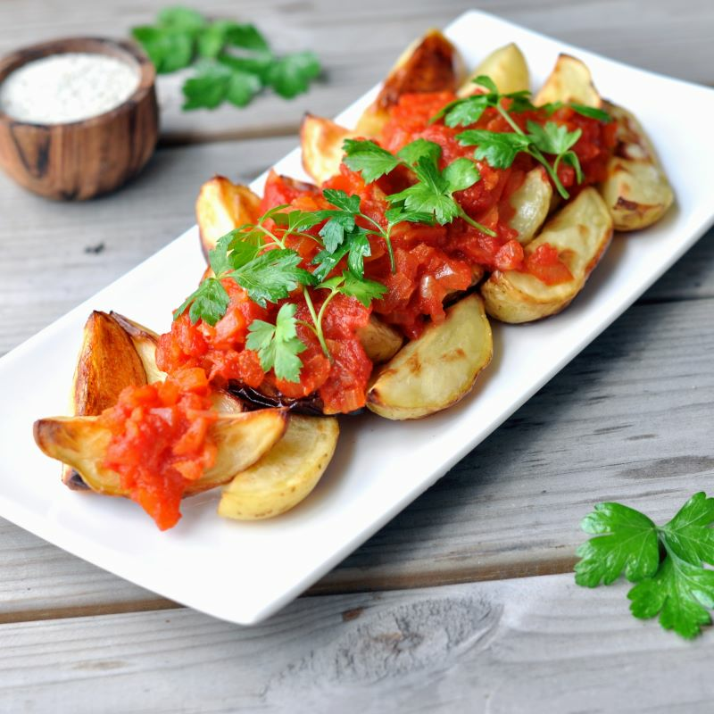 Patatas bravas er en spansk tapasrett bestående av poteter toppet med en smakfull tomatsaus.