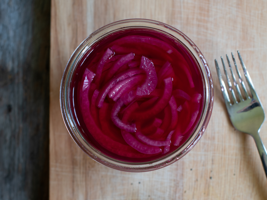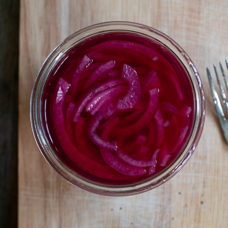 Nyt syltet rødløk på taco, skiver, gryter eller salat.