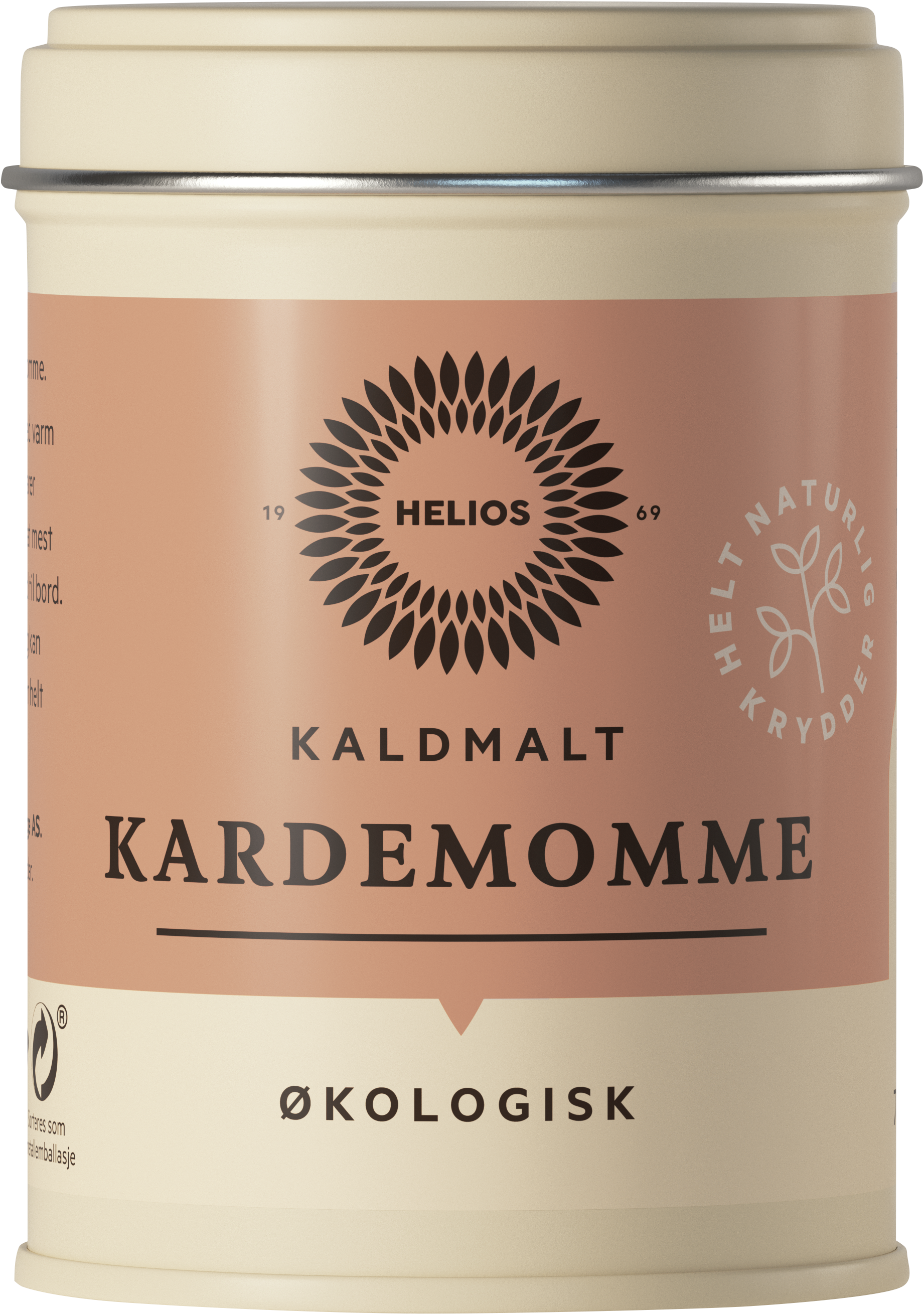 Helios Kardemomme er helt rent, helt ekte og helt nydelig. Kaldmalingen bevarer aromaer og essensielle oljer, slik at mest mulig av smaken blir med fra jord til bord. Passer til bakst og karri-retter, og kan også blandes i kaffe eller te for en helt ny smaksopplevelse. Boksen inneholder 23 g.