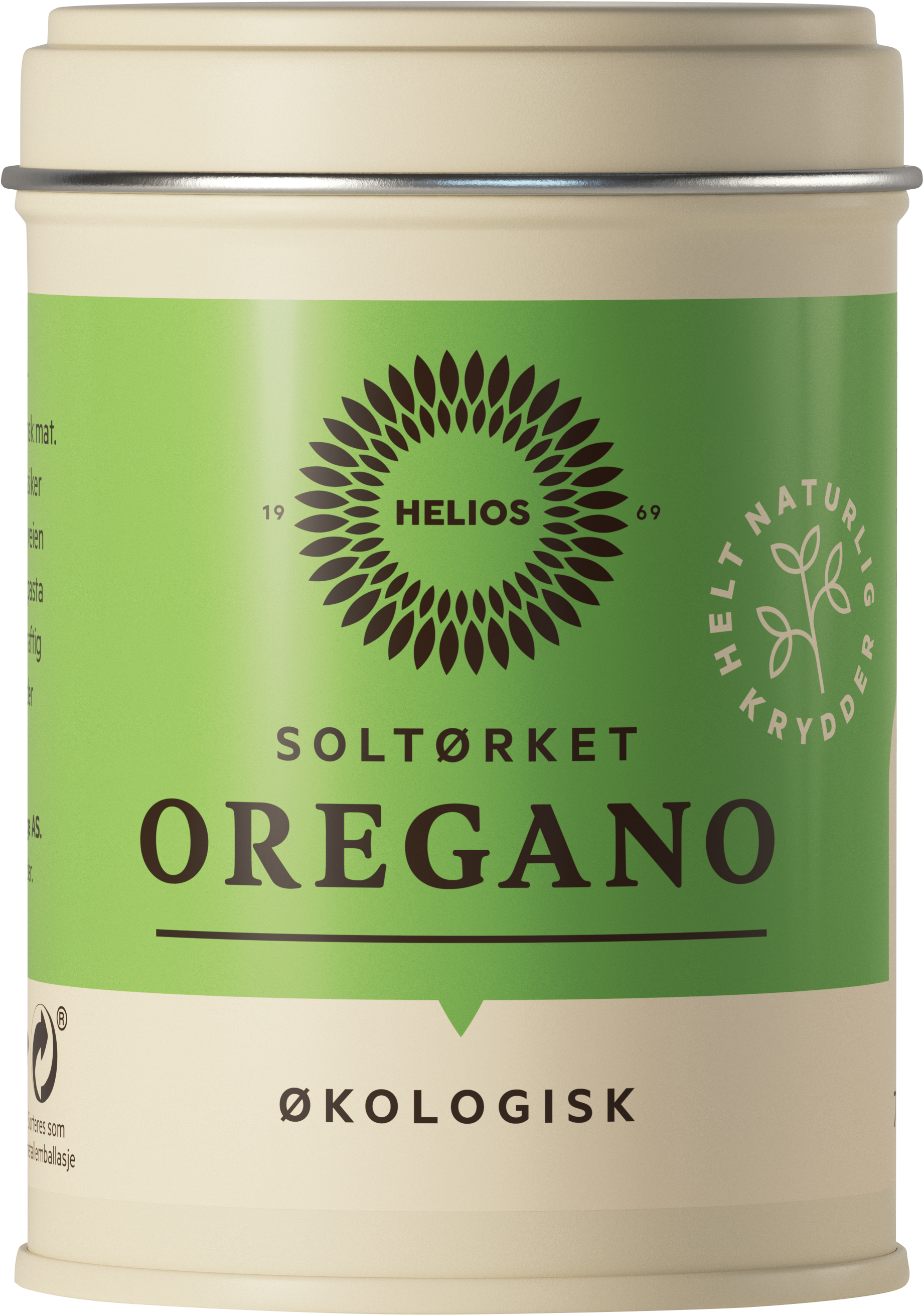 Helios Oregano er smaken av Middelhavet og italiensk mat. Dampbehandlet og soltørket klassiker som har med seg mye smak hele veien fra jord til bord. Perfekt til pizza, pasta og ostesmørbrød! Oregano har kraftig smak og tåler godt å tilsettes under koking eller før steking. Boksen inneholder 6 g.