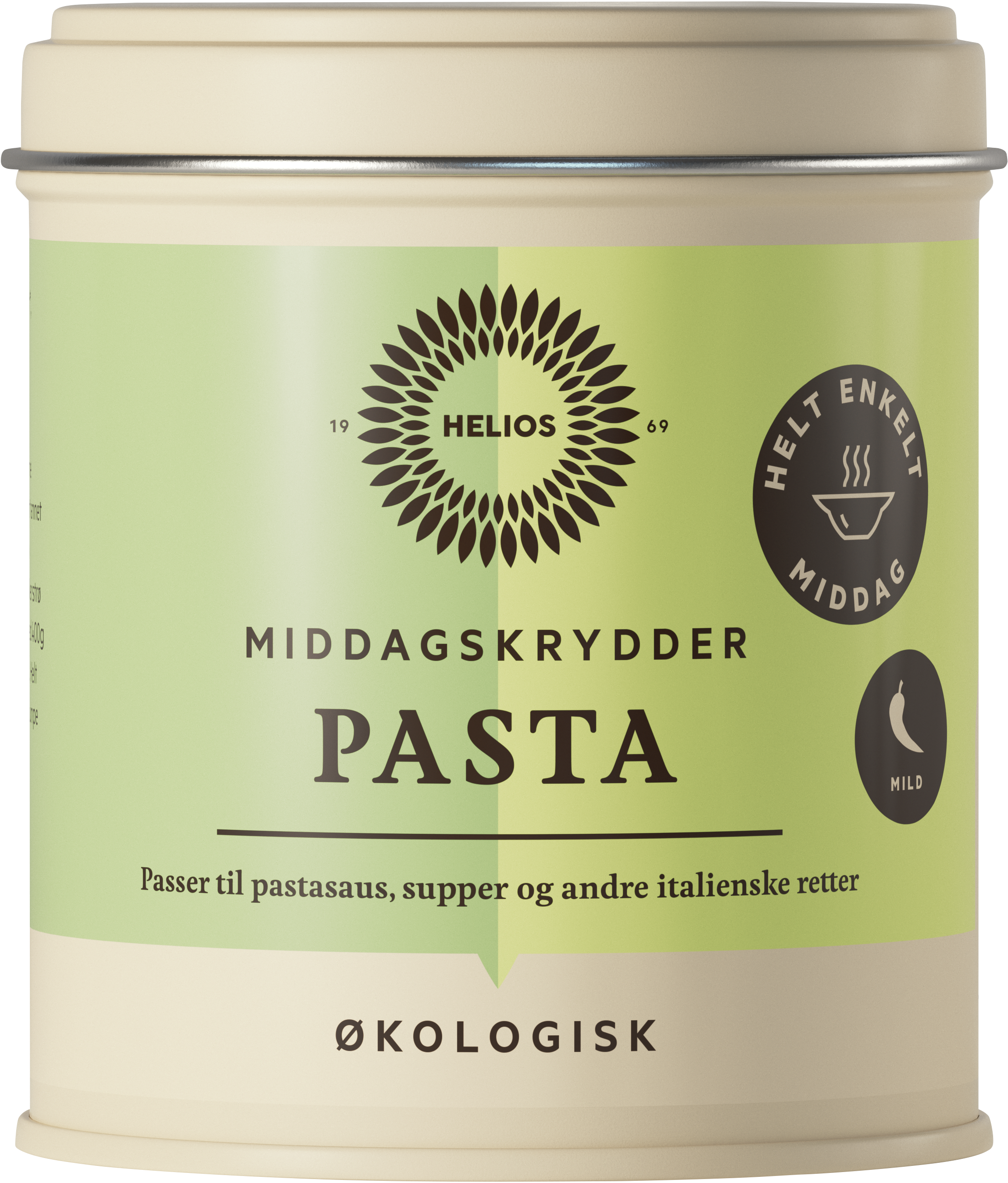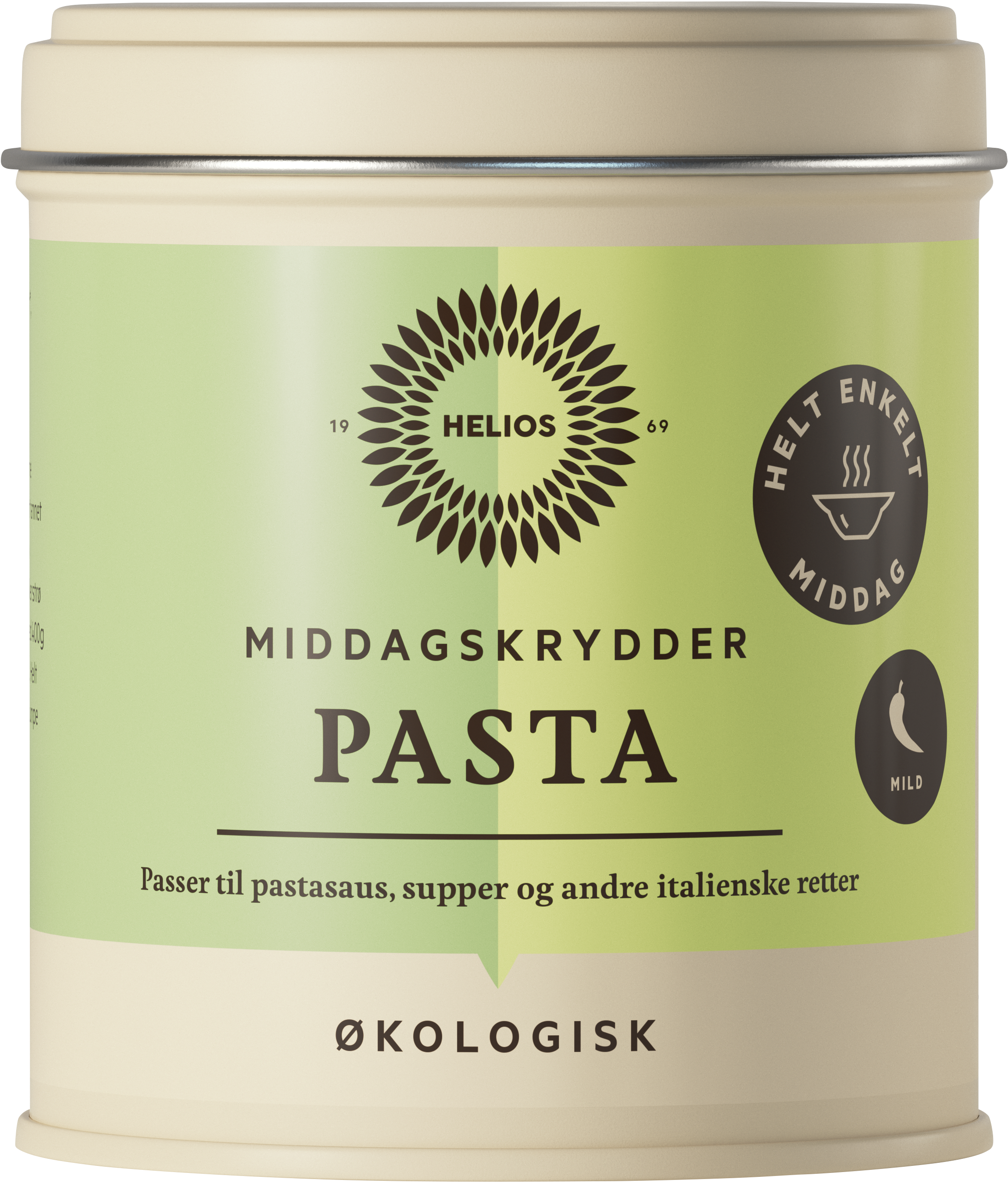Helios Pasta krydderblanding er en mild og aromatisk blanding av blant annet oregano, basilikum og søt paprika, som faller i smak hos hele familien. Bruk som smaksetter i pastasauser, supper eller andre italienske retter med tomatsaus, eller strø over maten ved bordet for ekstra smak. Helt uten tilsetningsstoffer.