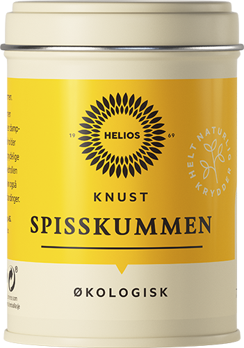 Helios Spisskummen er knuste frø av økologisk spisskummen med varm, lett bitter smak. Frøene er damp-behandlet og raskt pakket i tett beholder som bevarer den gode smaken og nydelige aromaen. Spisskummen spiller hovedrollen i tacokrydder, men kan også brukes alene, eller i andre krydderblandinger. Boksen inneholder 30 g.